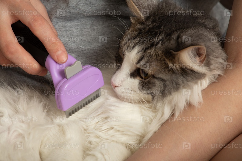 Женщина ухаживает за кошкой