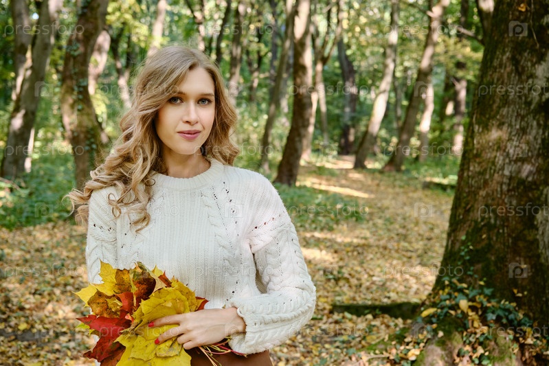 Счастливая осенняя женщина