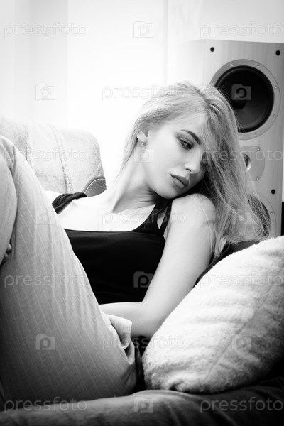 Женщина слушает музыку