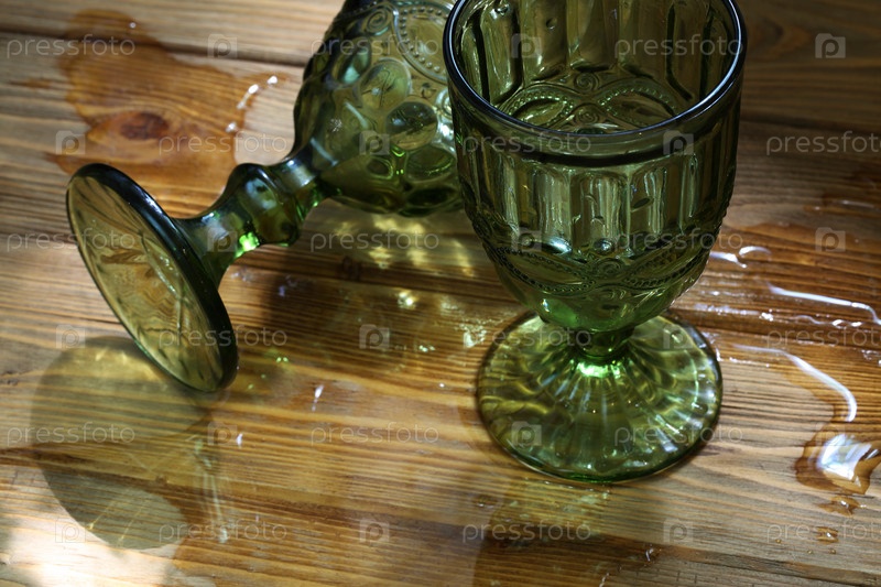 Два бокала зеленого цвета на деревянном столе