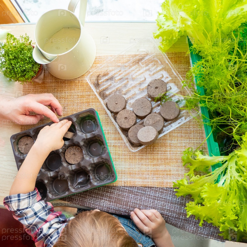 В лоток мини-теплицы ребенок помещает торфяные таблетки. плоская планировка