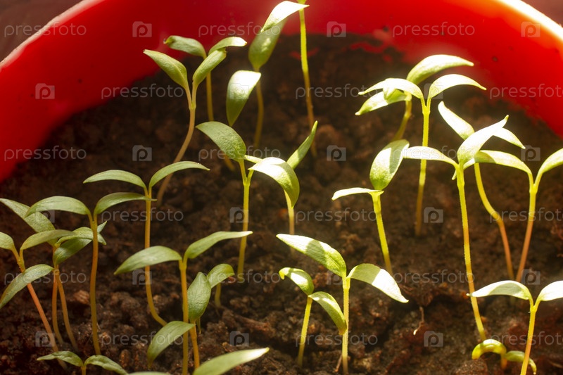 Рассада перца крупным планом, размытый фон
