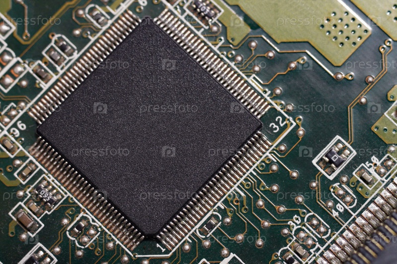 Печатная плата крупным планом квадратные чипы