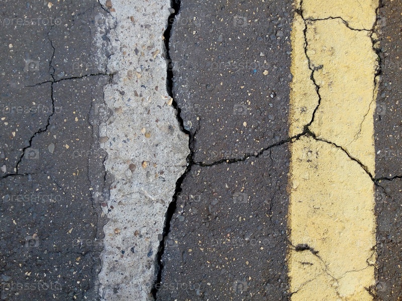 Треснувший асфальт после землетрясения