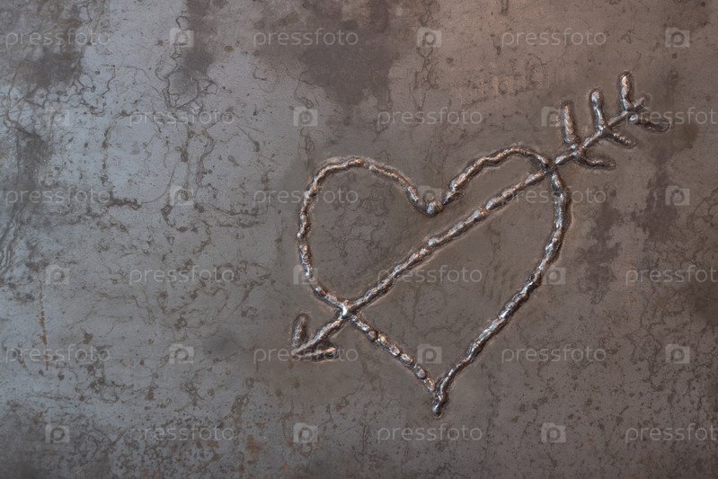 Сердце, пронзенное стрелой Купидона. Изображение на стальном листе электросваркой