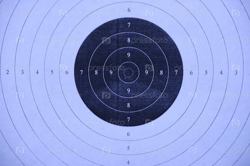 Мишень для стрельбы из пневматической винтовки крупным планом. Черно-белая мишень