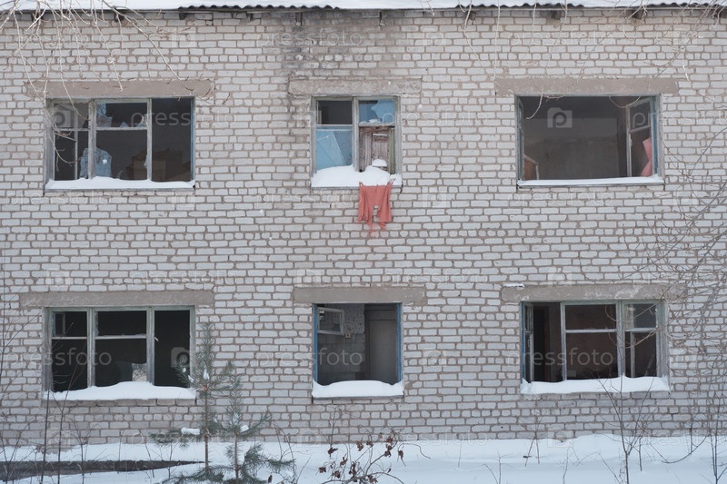 Заброшенное здание. разбитые и открытые окна в нежилом здании