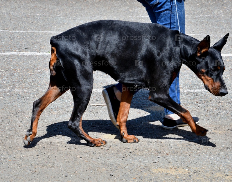 Собака породы доберман