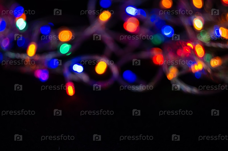 Красочное боке из расфокусированной гирлянды на черном фоне