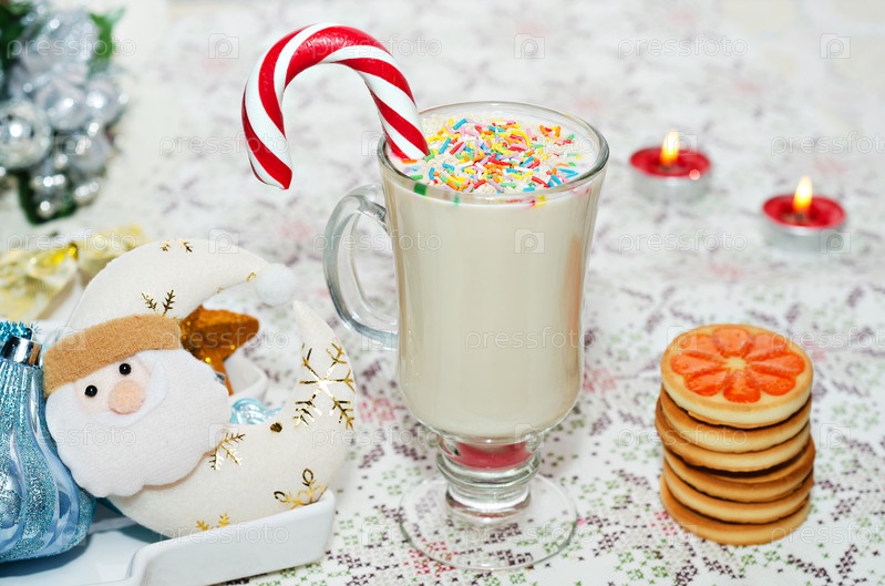 Домашний молочный коктейль с карамельной тростью на зимние праздники, выборочный фокус