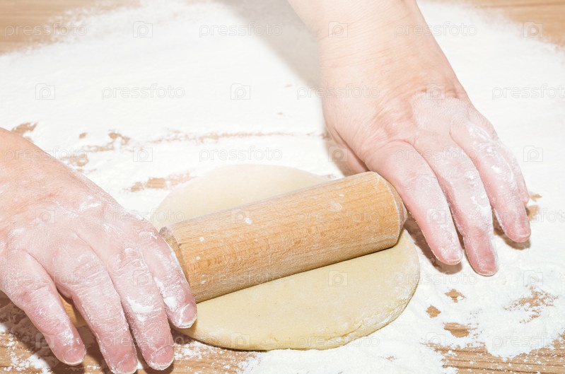 Раскатывание сырого теста скалкой, выборочный фокус
