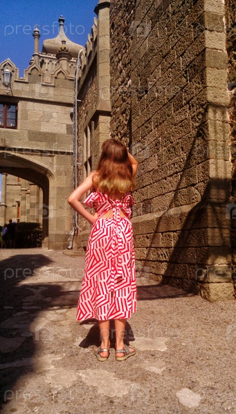 Девочка на экскурсии на территории Воронцовского дворца. Крым. Алупка