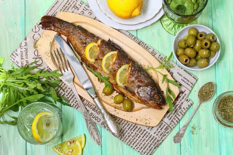 Запеченная форель в итальянских травах с лимоном и оливками