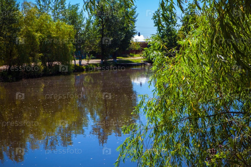 Летний пейзаж с видом на искусственный пруд