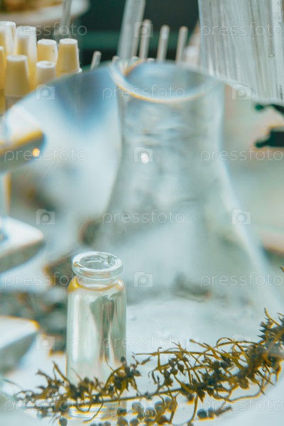 Масло из конопли CBD, ученый держит бутылку масла каннабиса против растения марихуаны