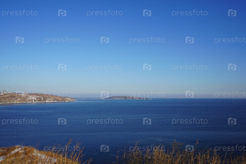 Морской пейзаж с видом на побережье, Владивосток, Россия