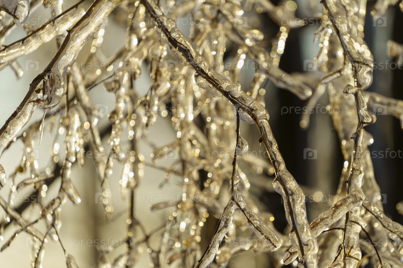 Зимний фон с ветвями деревьев во льду