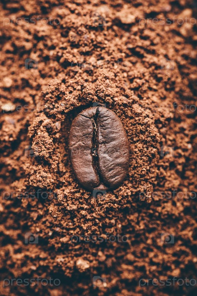 Кофейное зерно на куче молотого кофе