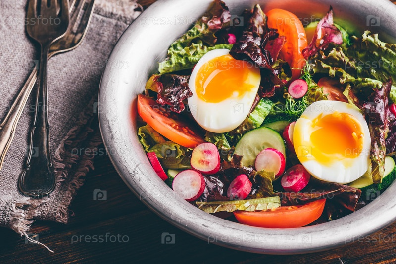 Свежий весенний салат с домашними овощами и вареными яйцами