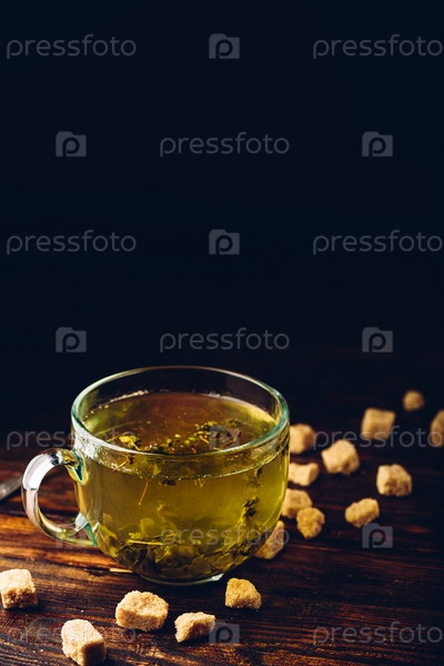Чашка травяного чая с сахаром коричневого чая