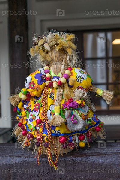 Соломенная кукла в ярком матерчатом костюме, сделанном руками человека