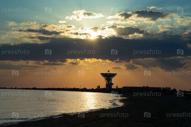 Радиотелескоп Р-2500 РТ-70 на фоне красивого заката