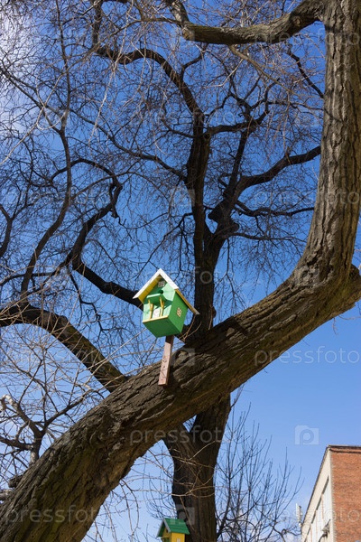 Городской пейзаж с домиками для птиц