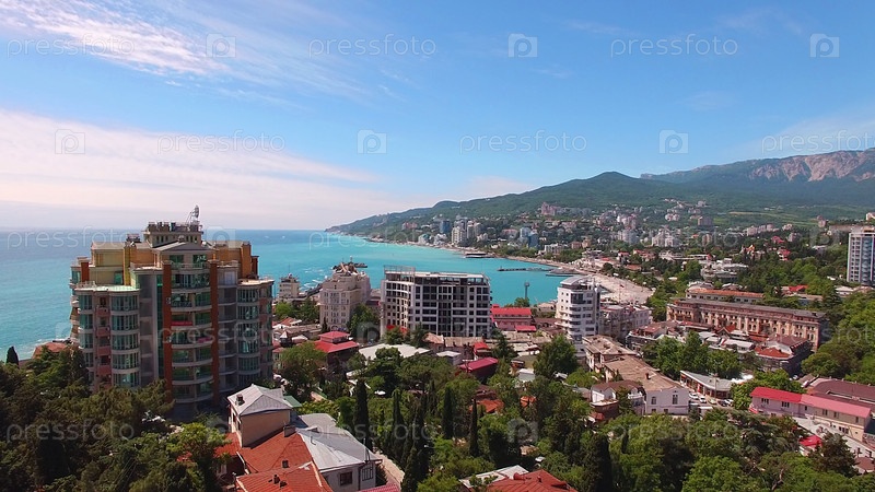 Вид с воздуха на городской пейзаж Ялты, Крым