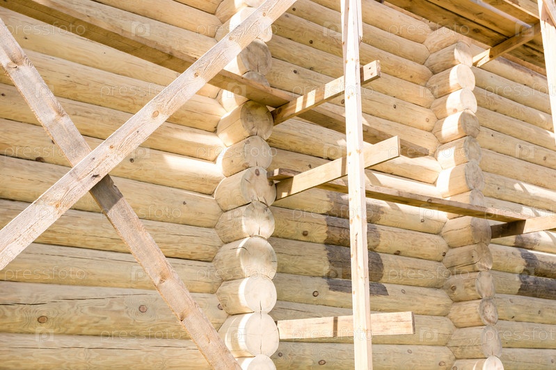 Фрагмент нового деревянного дома из круглых бревен