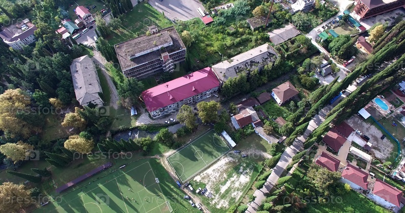 Вид с воздуха на городской пейзаж Нового Афона, Абхазия