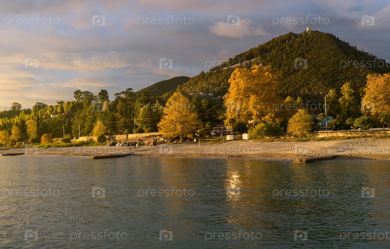 Городской пейзаж Нового Афона в Абхазии на закате