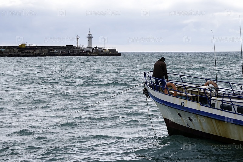 Морской пейзаж с видом на рыбака