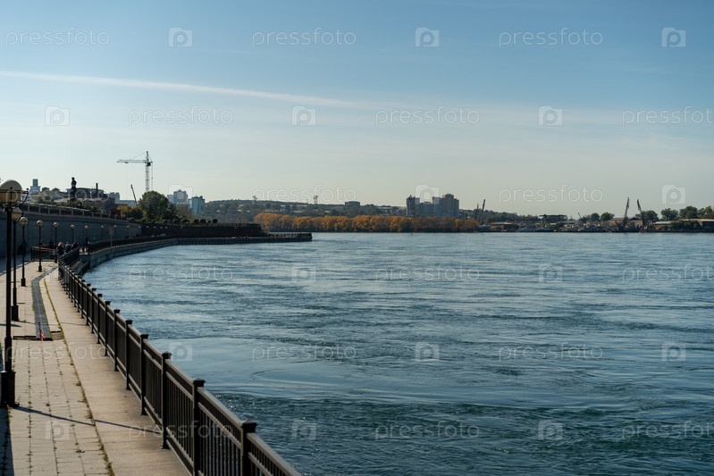 Городской пейзаж с видом на набережную и людей