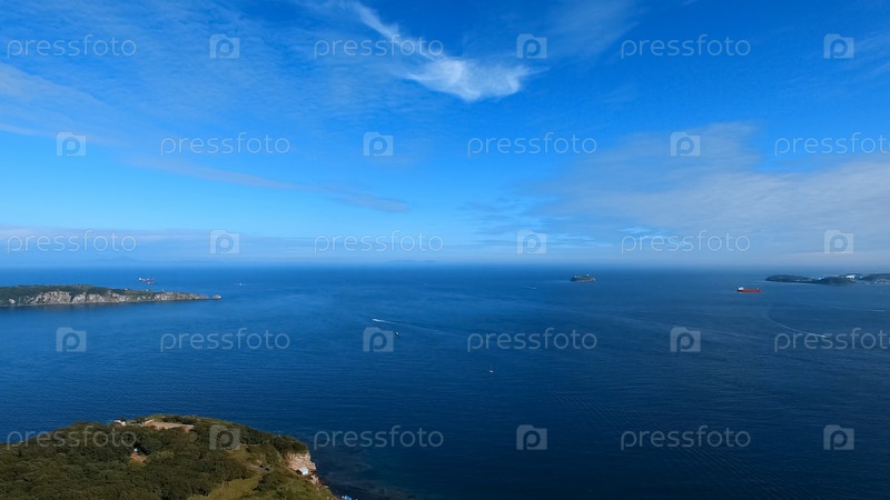 Морской пейзаж в проливе Босфор Восточный. Владивосток