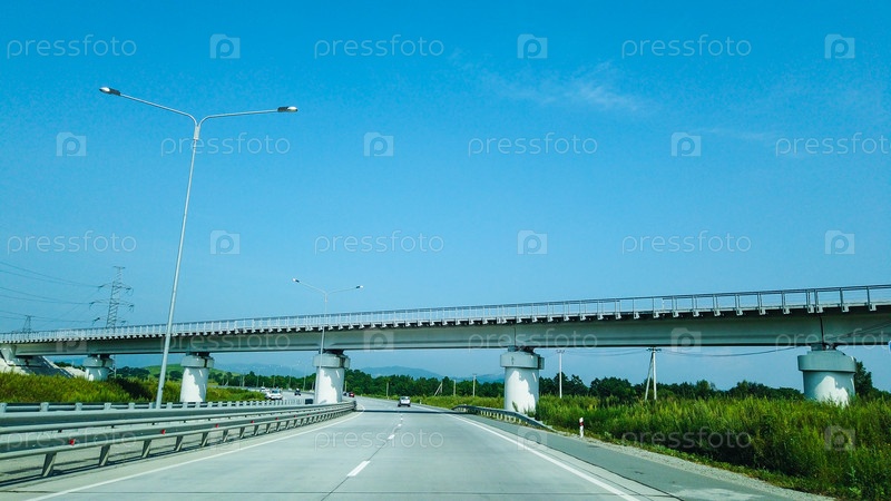Владивосток, Россия. Мост через шоссе в сторону аэропорта