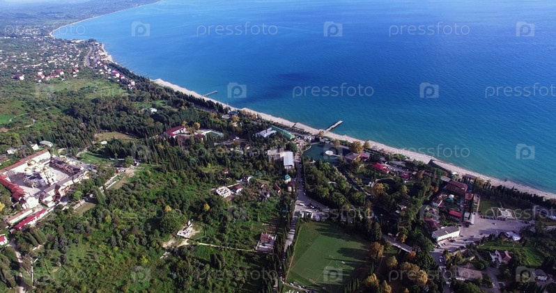 Вид с воздуха на городской пейзаж Нового Афона, Абхазия
