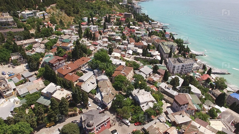 Вид с воздуха на городской пейзаж Ялты, Крым