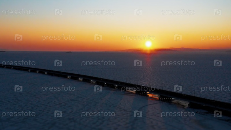 Морской пейзаж с видом на маловодный мост во Владивостоке, Россия