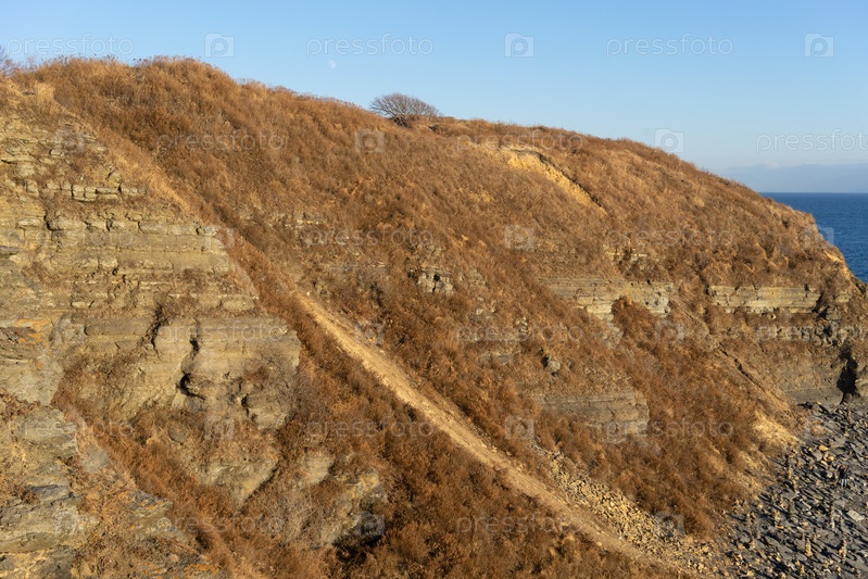 Морской пейзаж с береговой линией на острове Русский