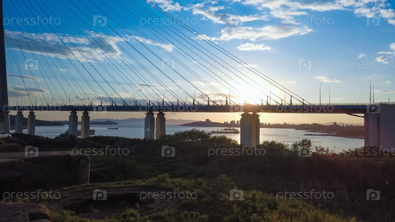 Природный ландшафт с видом на Русский мост и закат