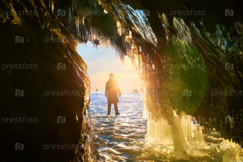 Вид из ледяной пещеры на замерзшее озеро Байкал