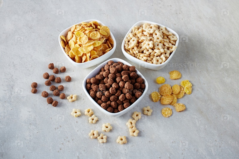 Хлопья для завтрака в мисках на светлом фоне