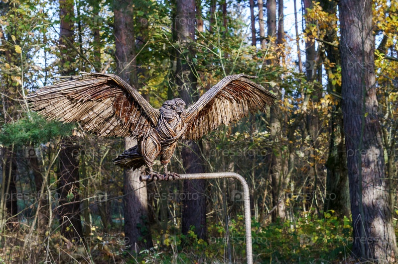 Экологический маршрут в лесу. Арт-объект - орел, сплетенный из веток лозы. Автор Кристина Евстигнеева