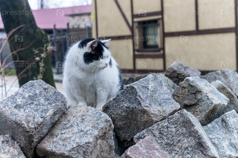 Толстый кот на улице. Толстый пушистый кот. Уличный бездомный кот