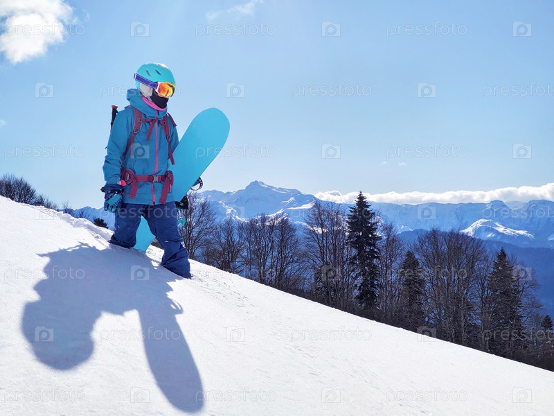 Молодая активная женщина, стоящая со сноубордом на рыхлом снегу