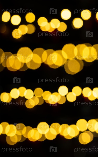 Расфокусированные золотые светлые пятна на черном фоне