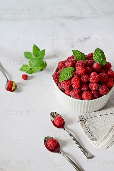 Сочная спелая малина в тарелке на белом фоне спелая малина в белой тарелке на белом фоне, витамины для организма