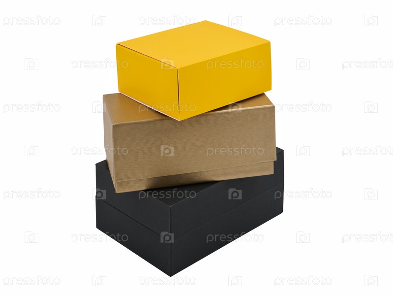 Три пустые подарочные коробки на белом фоне, изолированные, крупным планом