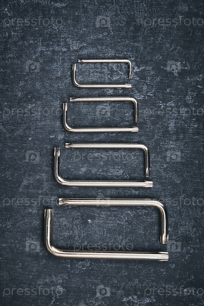 Пирамида набора звездных ключей на сером фоне, вид сверху