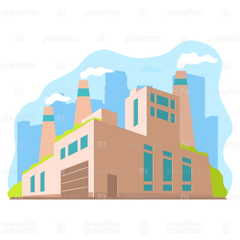 Экологическая фабрика.Экопроизводство.Промышленная фабрика в перспективе.Фассадное производственное здание.Концепция эко-фабрики